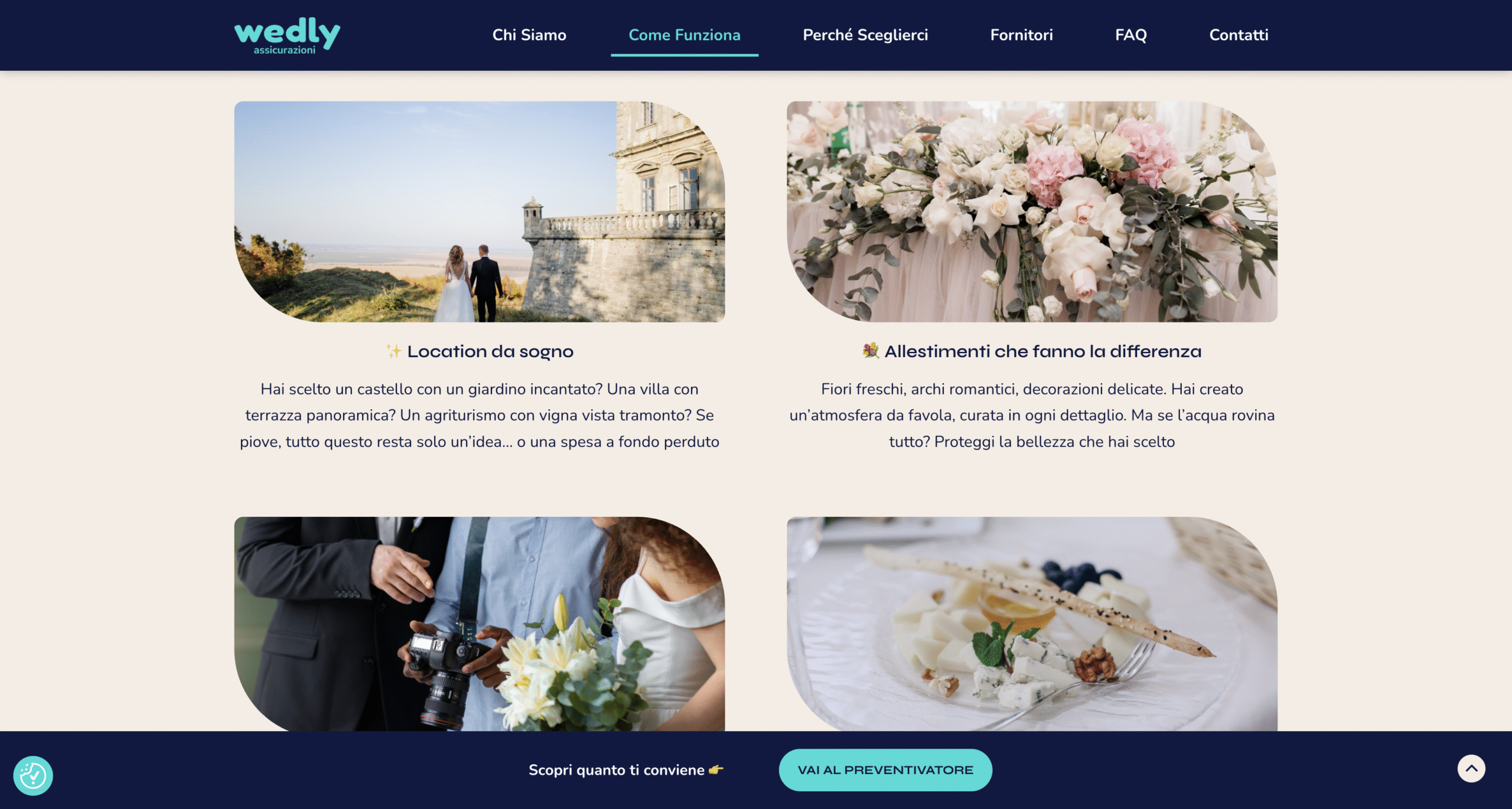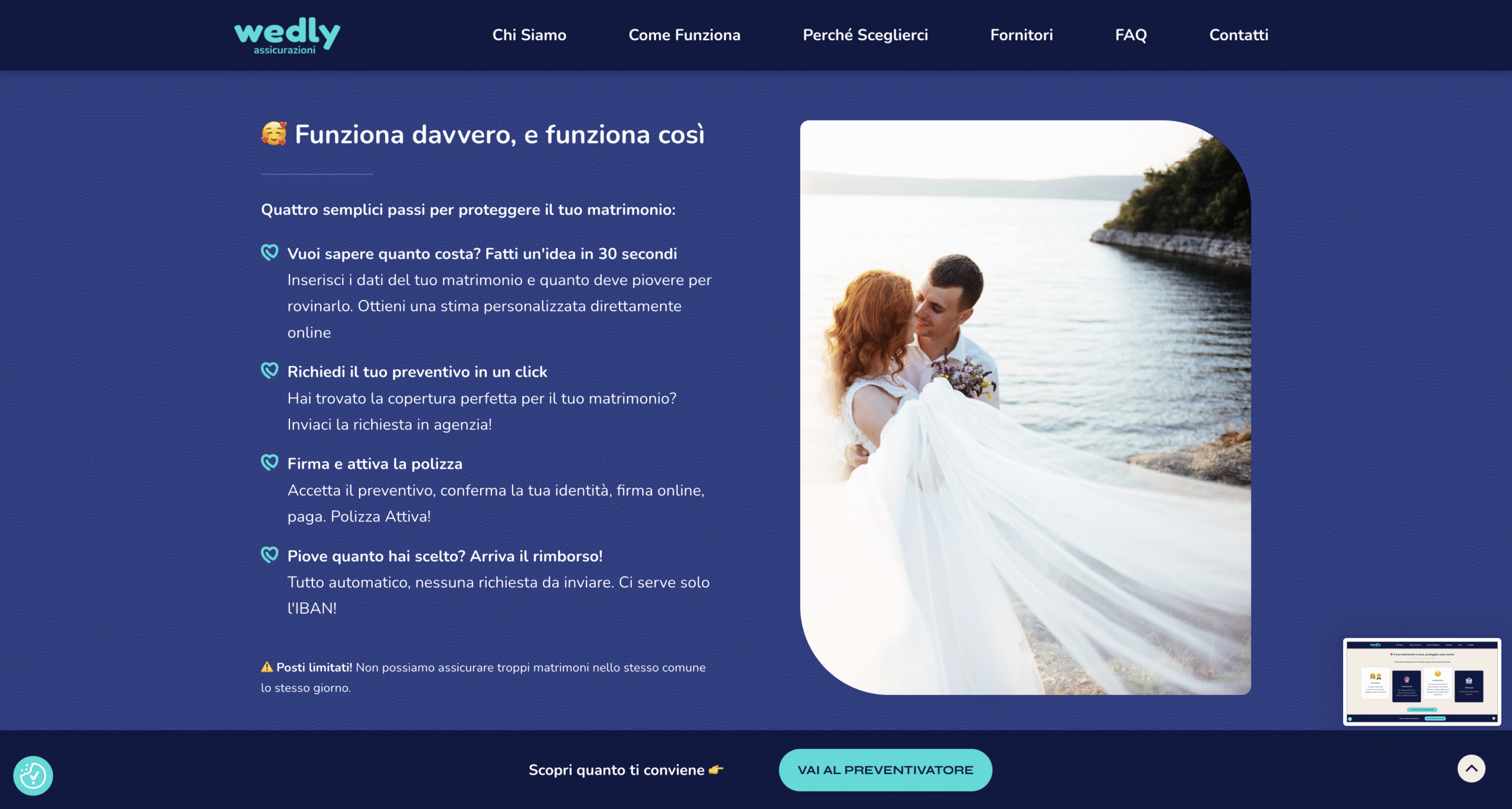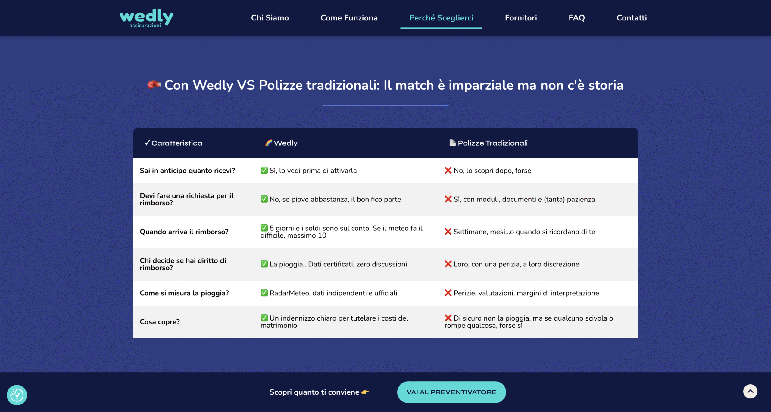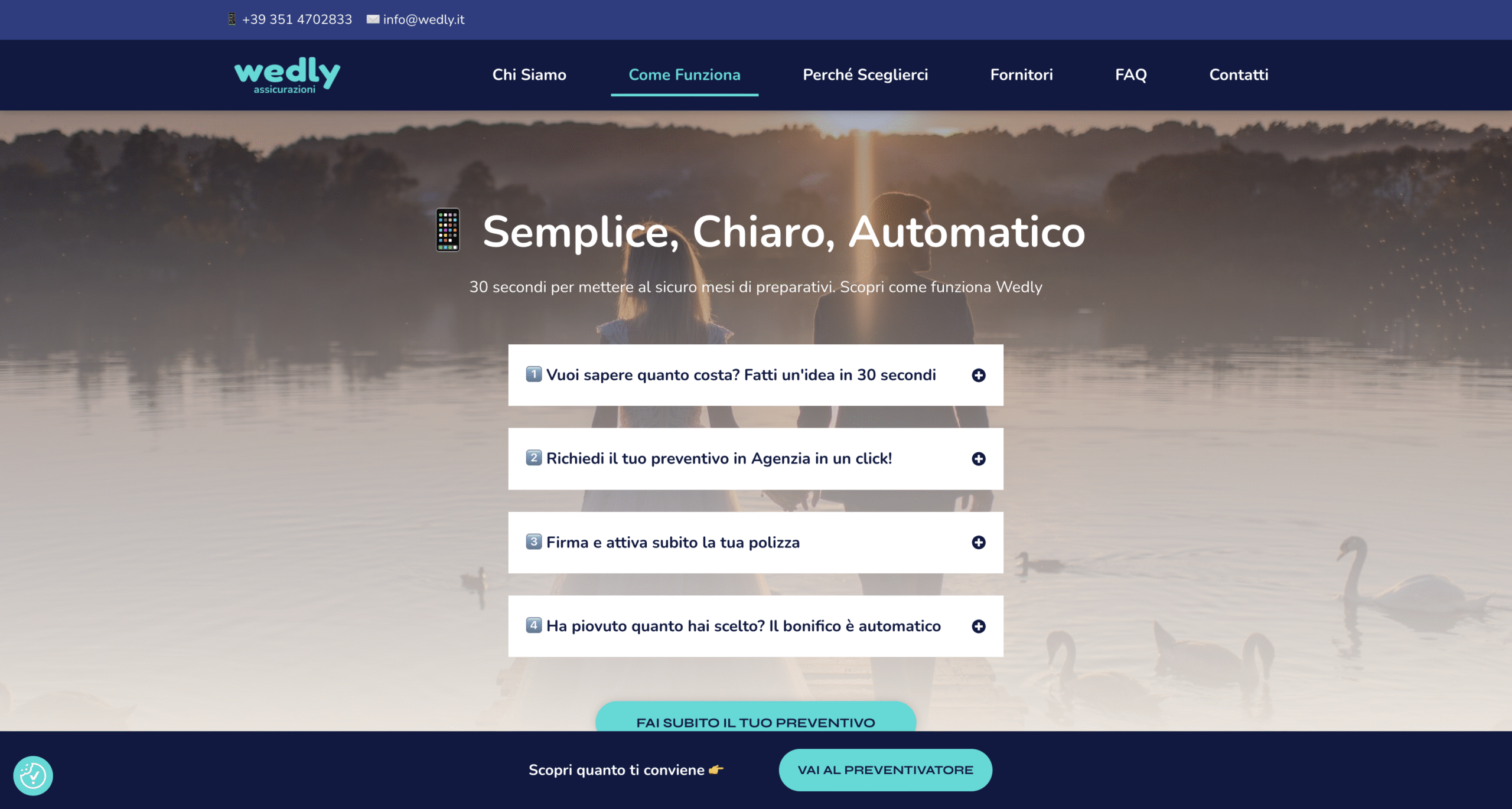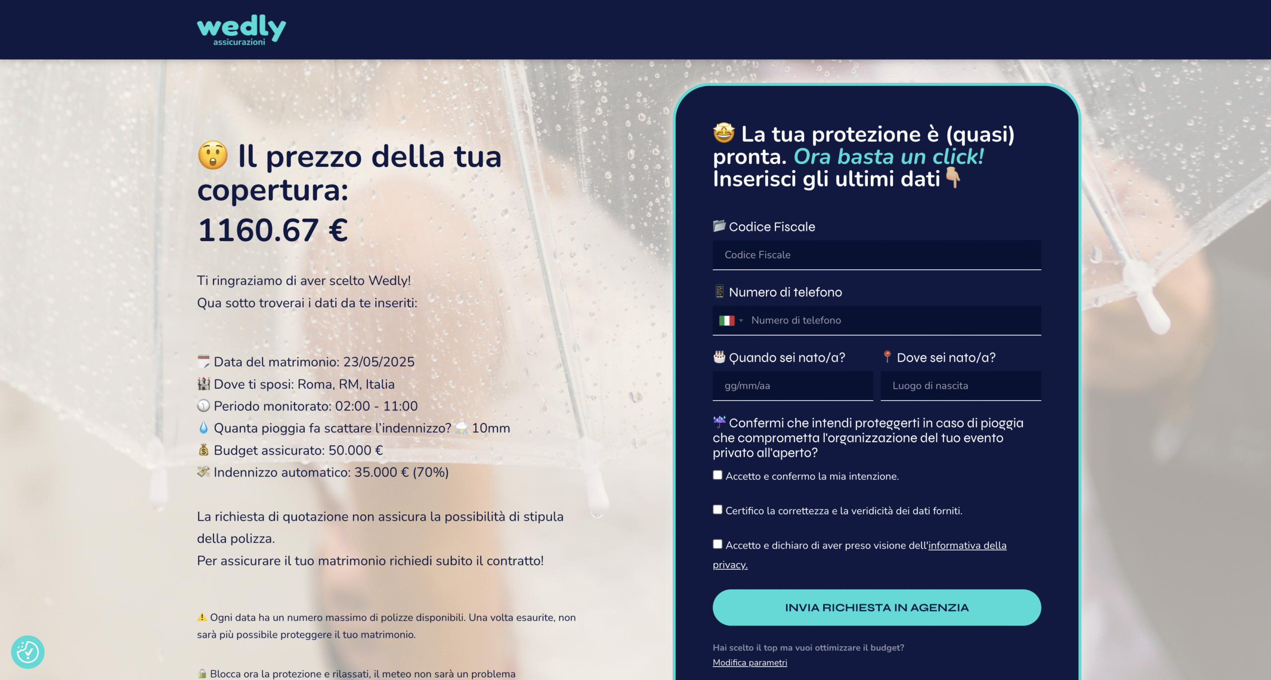 Sviluppo in WordPress di un sito per un’agenzia che si occupa di polizze e di rimborsi in caso di pioggia durante i matrimoni.